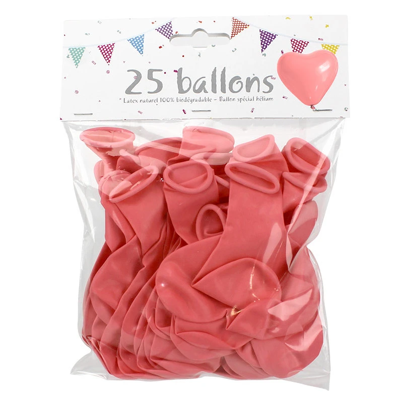 Ce lot contient 25 ballons roses de 26 cm en forme de cœur. Ces ballons sont parfait pour compléter vos décorations de salle, pour vos divers évènements, anniversaire, mariage, saint valentin, fêtes des mères ou encore babyshower.