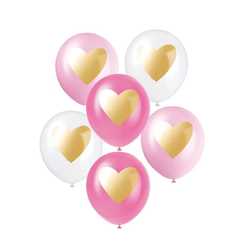 Ce lot contient 6 ballons de 30 cm roses ou blancs agrémentés d’un cœur doré. Ces ballons sont parfait pour compléter vos décorations de salle, pour vos divers évènements, anniversaire, mariage, saint valentin, fêtes des mères ou encore babyshower.