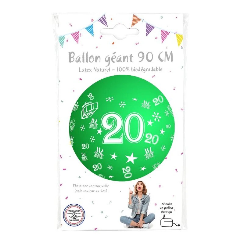 Ballon Géant 90cm Chiffre 20 Coloris Aléatoires