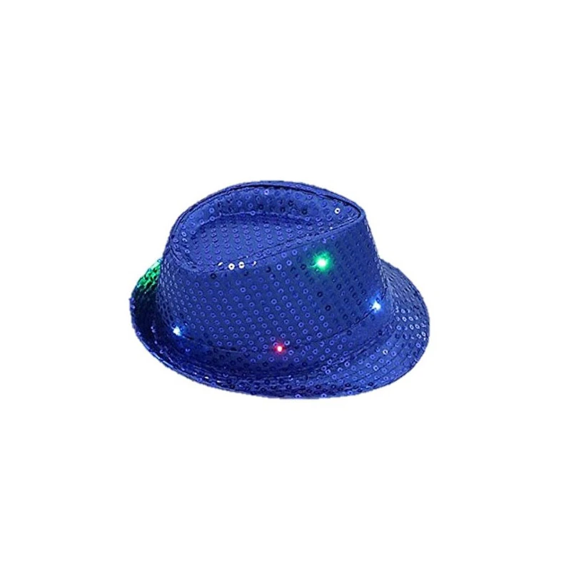 Chapeau SEQUIN BLEU Clignotant 6 LED 3 PILES LR44 FOURNIES