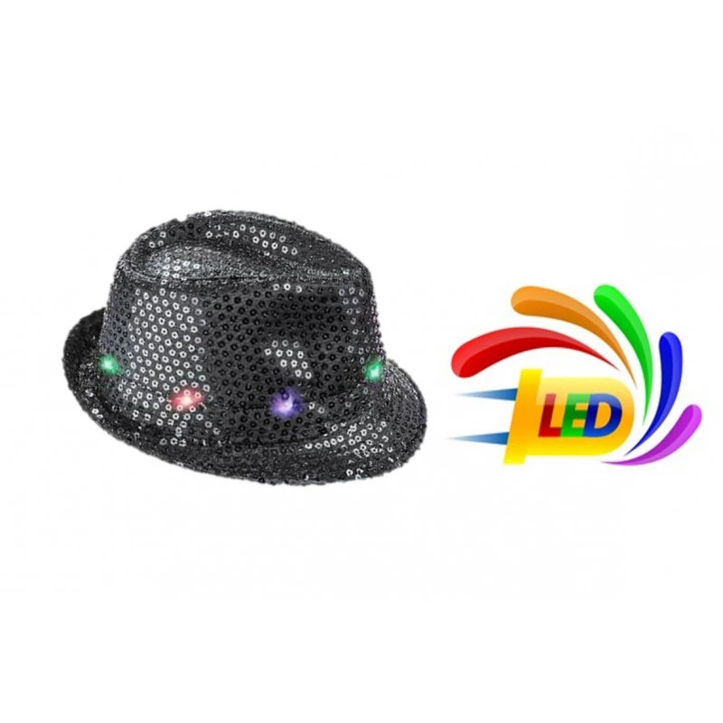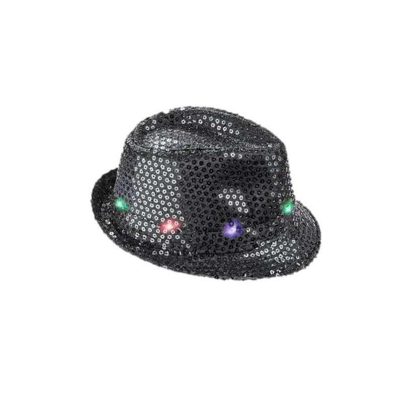 Chapeau SEQUIN NOIR Clignotant 6 LED 3 PILES LR44 FOURNIES