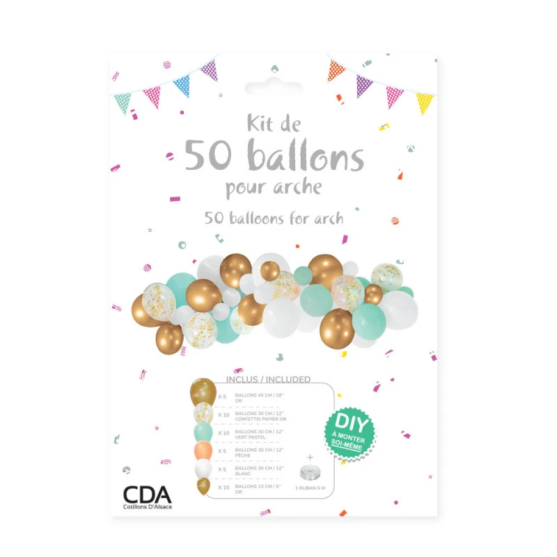 Kit De 50 Ballons Pour Arche OR/BLANC/VERT