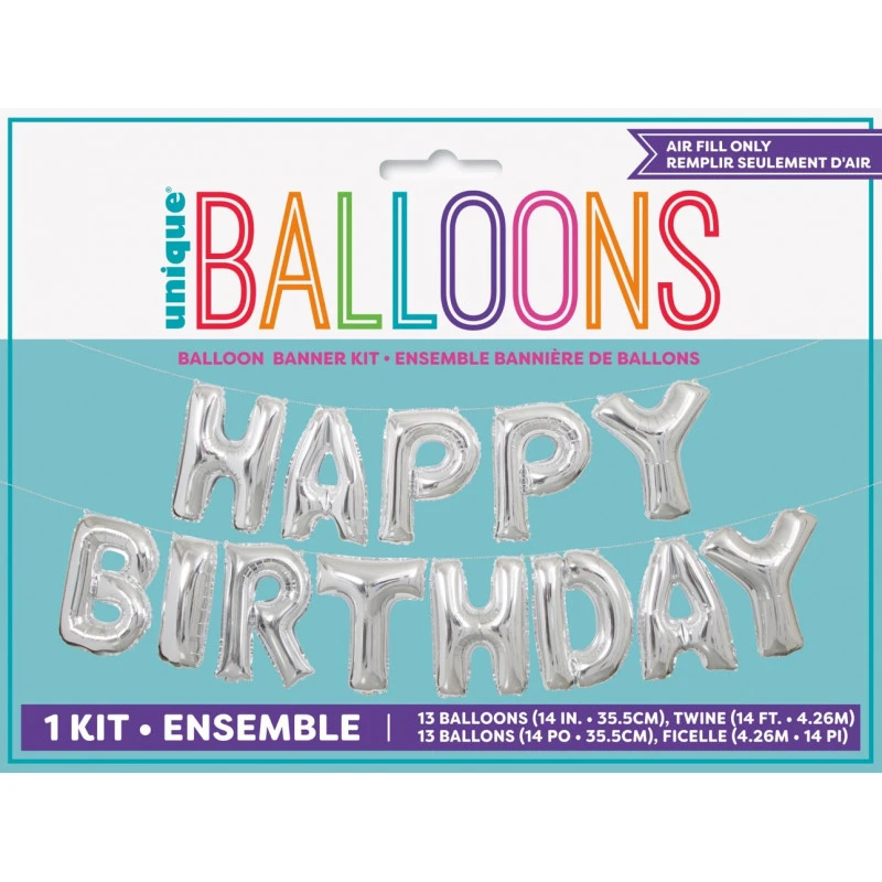 Kit Guirlande Ballons Mylar- Argent 36cm Happy Birthday