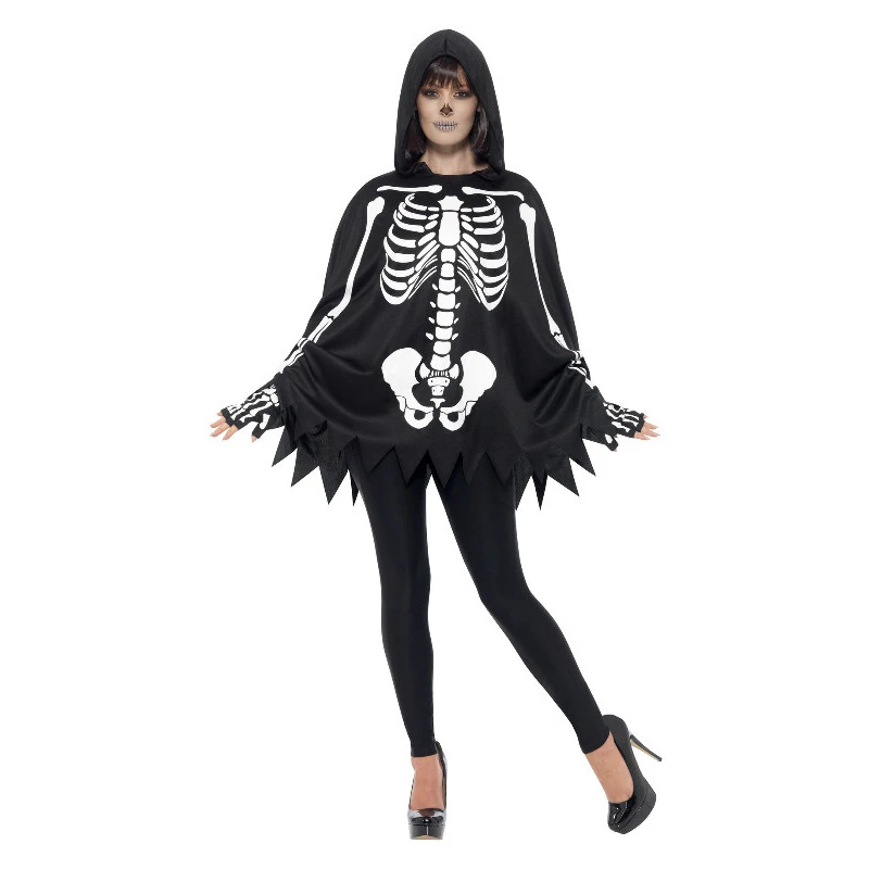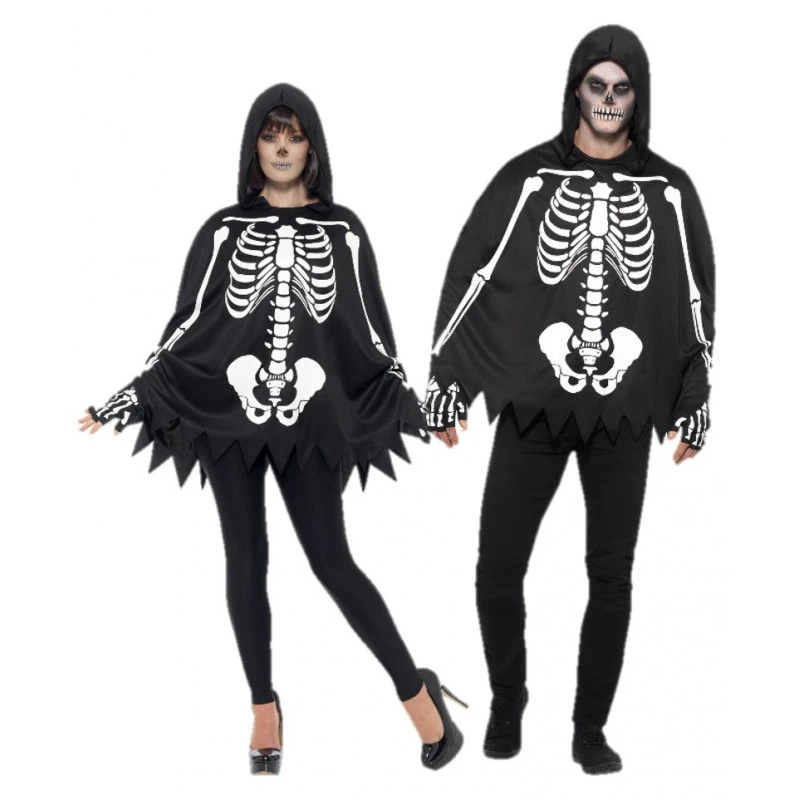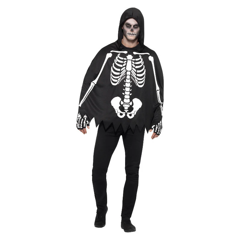 Kit Squelette, Unisexe, Noir, Avec Poncho Et Des Gants