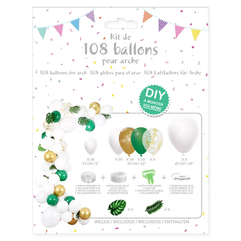 Kit TROPICAL 108 Ballons + 10 Feuilles Et Accessoires