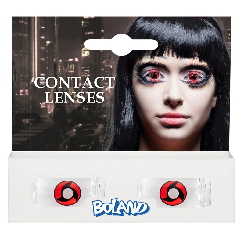 Ces lentilles spéciales Halloween de 3 mois sont rouges avec un symbole noir au milieu. Leur design unique les rend parfaits pour une tenue effrayante de style manga.