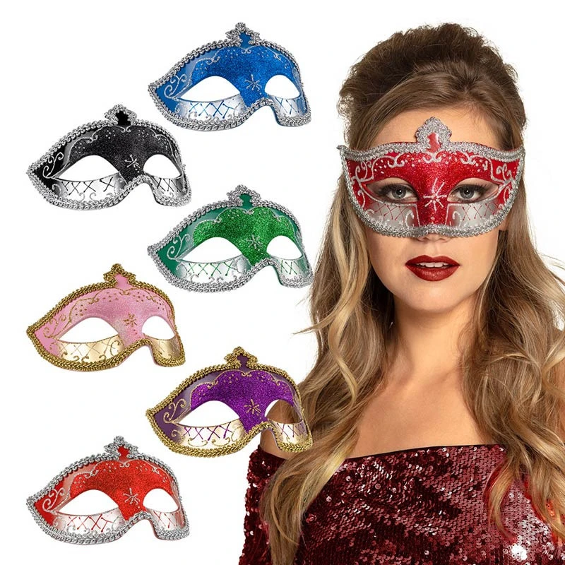 Magnifique masque vénitien avec des paillettes en 6 couleurs différentes. Le masque parfait pour un bal masqué, un carnaval ou une fête à thème.