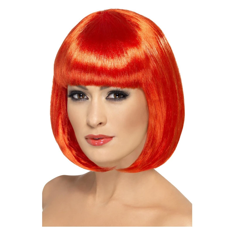Perruque Partyrama, 12 Pouces, Rouge, Bob Court Avec Frange